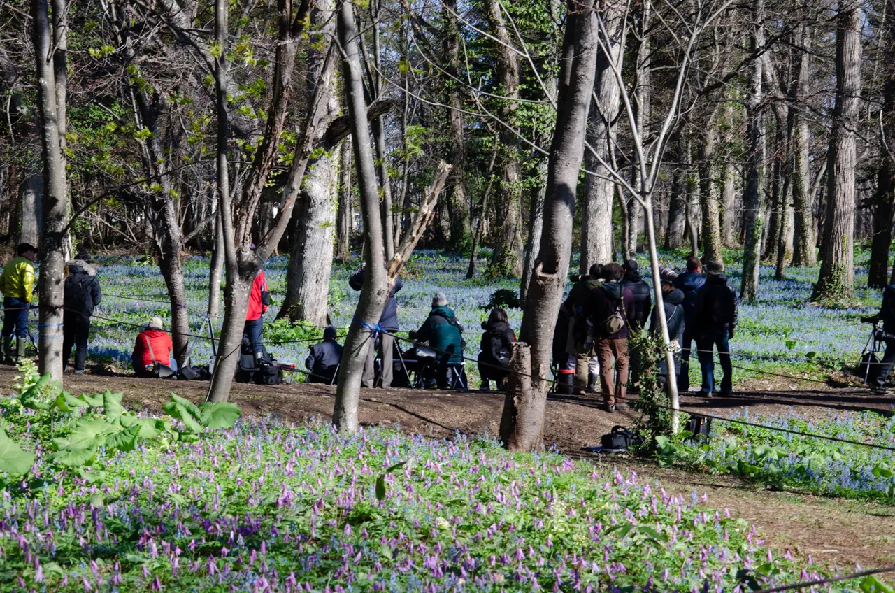 A tremendous number of photo enthusiasts are waiting for the appearance of the Ezo squirrels.